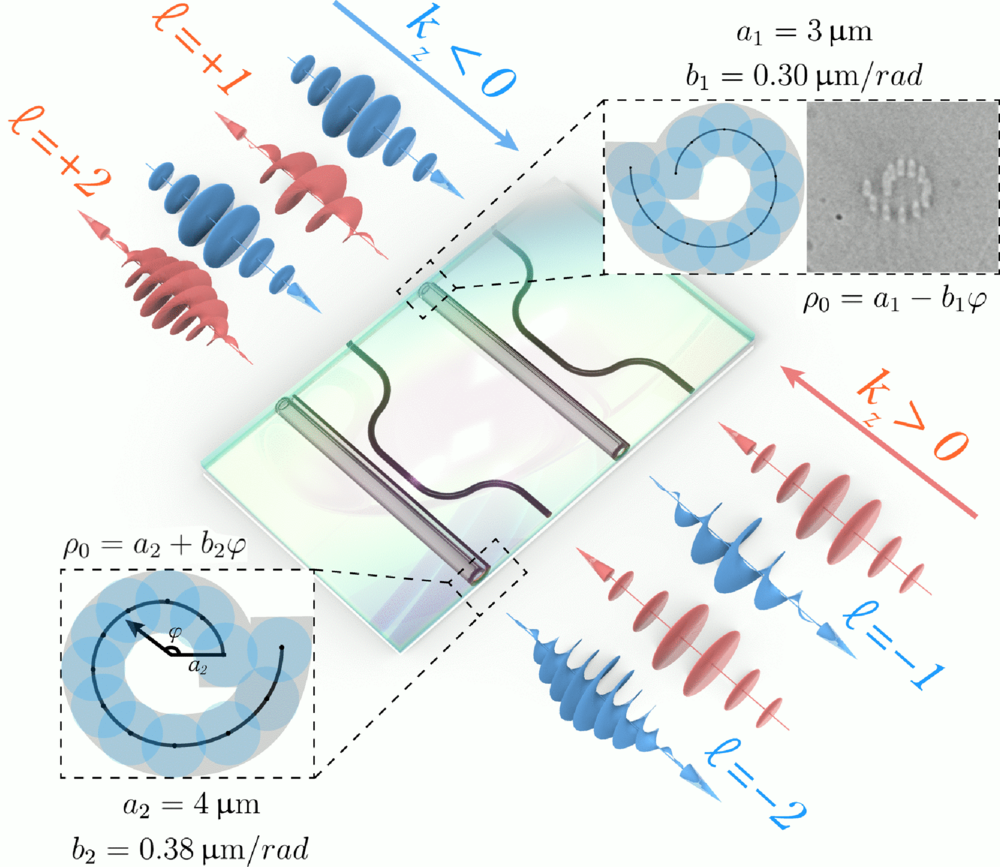 近日,上海交通大学金贤敏教授团队、南京大学夏可宇教授团队和新加坡国立大学仇成伟团队利用具有阿基米德截面的手性光波导来诱导轨道-轨道相互作用,观察到轨道角动量(OAM)和光的线性动量锁定。这种轨道角动量-动量锁定使得在光子芯片中按需生成确定性且鲁棒的轨道角动量涡旋光束成为可能。这种新的关联为奇异的高维手性物理效应铺平了道路,也提供了在高维空间中芯片上操控光的能力。研究成果于 2025 年 10 月 2 日以题为“Locking Orbital Angular Momentum with Linear Momentum of Light”发表在物理学TOP期刊《Physical Review Letters》上。